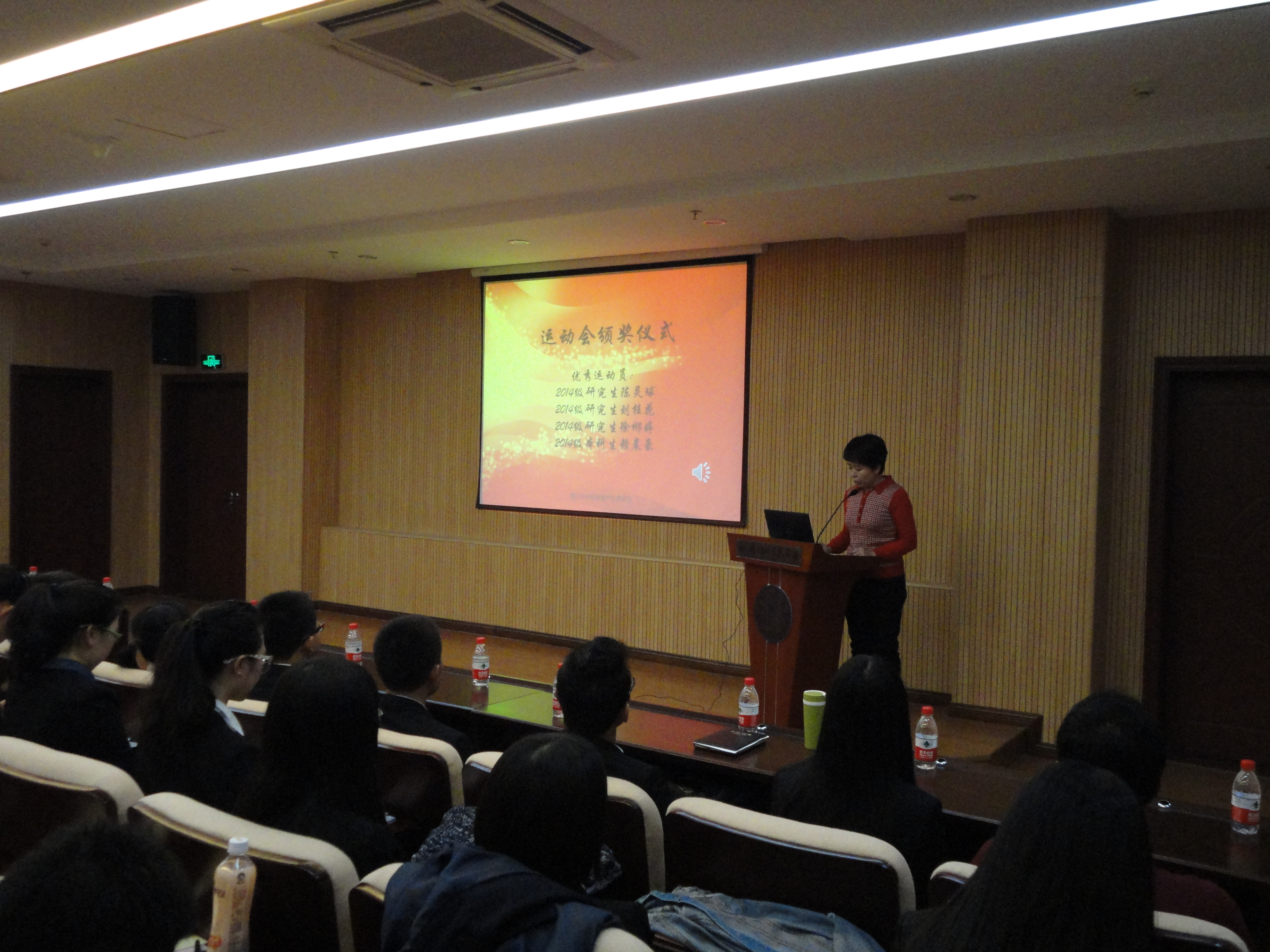 陈国全为在本届校学生运动会上获得佳绩的四名功勋运动员颁发了优秀运动员证书和奖金。