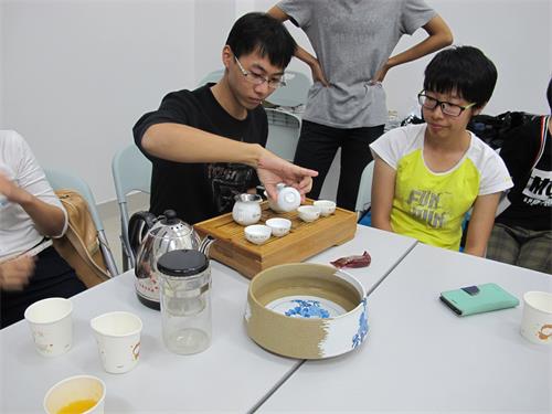 本次活动的主题为“中国传统的茶文化”,推出了有关茶文化的展示活动。林杰圣和郑蒙晨两位同学还特意进行了沏茶表演。清香的铁观音与芳醇花茶的碰撞,犹如大片薄荷征服了每个人的心。