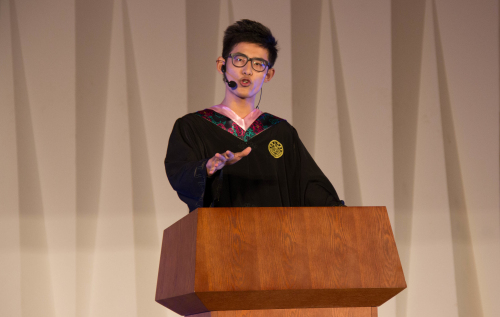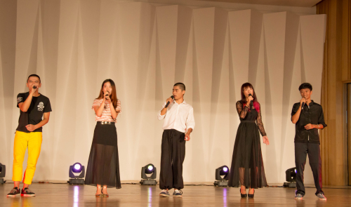 歌曲有了,戏剧也有了,不如再加上一场演讲吧。来自数学科学学院的王楠松同学带来的《乔布斯斯坦福大学毕业演讲模仿秀》将晚会推向又一个高潮,他将乔布斯演绎得惟妙惟肖,博得了阵阵掌声。演讲过后,拥有着大气沉稳的舞台气场和明亮声线的柳澍同学闪亮登场,带来一首《stay here forever》;“为戏痴狂的莫泊桑”团队带来的戏剧《A Christmas Carol》讲述一个人性复苏的吝啬鬼的故事,搞笑而又寓意深刻,观众都报以慷慨的掌声;一曲底气十足的《Let it Go》展示了张茜月同学的唱功与台风;获得一等奖的“Lucky Star”团队将经典故事《三打白骨精》进行了改编,幽默诙谐的英文台本与入木三分的表演将观众逗得捧腹大笑,掌声和欢呼声此起彼伏;获得特等奖的刘霞同学带着《Don’t cry for me, Argentina》压轴登场,动人高亢的美声为本次文艺汇演画上了完美的句号。