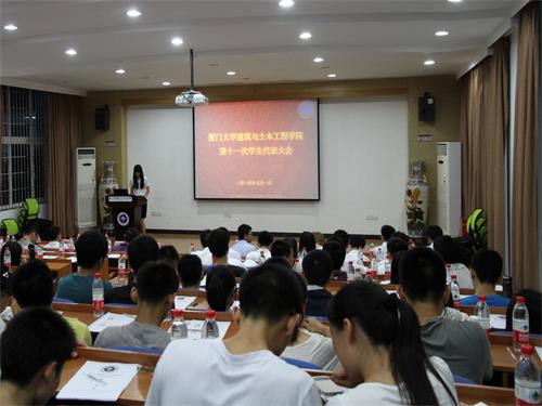 2014年7月1日晚七点,厦门大学建筑与土木工程学院第十一次学生代表大会在建筑与土木工程学院院楼报告厅正式举行。参加此次会议的有建筑与土木工程学院党委副书记黄明伟、团委书记刘建敏、团委副书记熊剑龙、党务秘书郑建斌、第十届学生委员会学生委员、第十一届学生委员候选人以及建筑与土木工程学院学生代表。此次会议的主要目的是进行学院学生会换届竞选,民主公开的产生新一届学生干部,加强学院同学与学生干部之间的沟通交流,强化学生会为学生服务的宗旨,进一步提高学生干部的修养和素质,共建和谐温馨团结的学院。