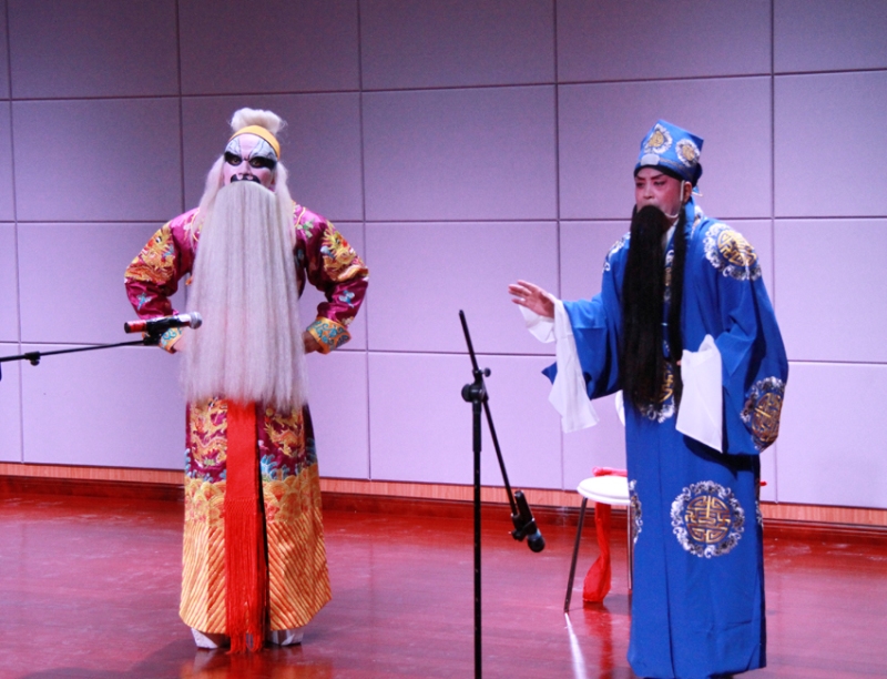本次中国传统文化秀由厦门市广播电视集团主持人陈鹭与海外教育学院英国籍本科生天天共同主持,并云集了厦门市朗诵学会、京剧协会的众多好手。文化秀在真挚饱满的现代诗朗诵《中华汉字、中华母语》中正式拉开帷幕。朗诵学会全体演员的精彩演绎,将他们对中国文化及汉字母语的真挚情感表现地淋漓尽致。