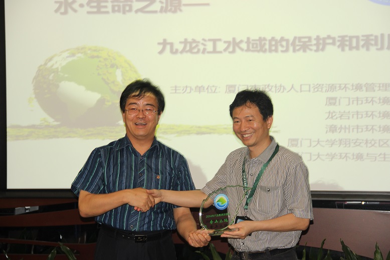 论坛首先由厦门大学环境与生态学院党委副书记周克夫老师致欢迎词。周老师首先感谢各主办单位对本次活动的大力支持,其次感谢各协办和承办单位的参与。周老师对香山论坛的发展过程进行简要介绍,同时他看到了在大家的共同努力下,香山论坛在不断壮大发展和成熟,此次论坛是历届参与人数最多,做报告人数最多的一次论坛,他相信香山论坛会办得越来越好。最后他祝香山论坛取得圆满成功。接下来,厦门市政协人口资源环境委员会主任朱奖思致辞,朱主任尤其强调厦门的环境与其它城市一样同样面临严重污染的问题,摆在我们目前是一个巨大的挑战,防治污染不仅是广大科学工作者的责任,同时也是广大群众和全社会共同的责任。而后,领导为主办单位、协办单位及13为演讲者颁发本届香山论坛纪念牌。