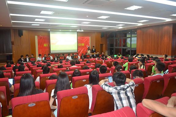 各组队员的VCR在介绍各队成员的同时,更是以自己独有的方式宣传了环保理念,表达了同学们热爱环保的决心。决赛分为必答题组“一探虚实”,抢答题组“眼疾手快”以及闯关型题组“过关斩将”。第一轮中,外文学院与公共卫生学院表现抢眼,答题速度极快,可见赛前准备充足;而药学院与材料学院稳扎稳打也发挥出色,各队伍不相上下。第二轮抢答题,各队竞相争取抢答机会,比赛趋于紧张激烈。其中法学院“阳光灿烂”队眼明手快、答题准确,在第二轮结束时暂列第一。之后的休息时间进行了观众抢答环节,观众踊跃举手参与互动。第三轮闯关答题分两轮,每轮每队可答4题。4道题目分值从10增加到40,但答错会扣除10分,因此每队答题时均经过深思熟虑。最终公共卫生学院的“秦时明月”队把握住了多个高分题目,后来居上,与药学院“选择题全”队以265分并列第一,并在加赛“一决雌雄”中正确答题,以10分的优势拿下整场比赛的冠军。