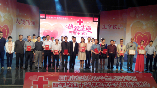 演讲结束后,厦门市红十字会、厦门市教育局等领导向参加演讲会的各学校领导及演讲者颁发了单位组织奖证书及个人荣誉证书。