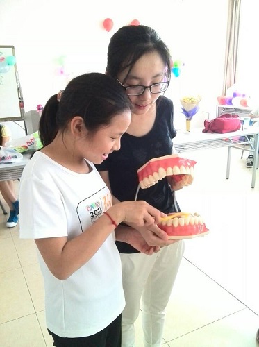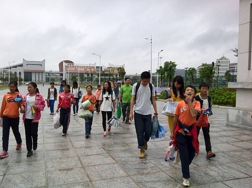 在与孩子们的说笑中,一行人来到翔安校区,早在校门口等待着的同学给孩子们分发了饮料和小零食,紧接着便带领孩子们进行环校参观。虽然一直阴雨绵绵,但孩子们全程充满欢乐,翔安校区宏伟的教学楼、漂亮的游泳馆和大气的图书馆等建筑给孩子们留下深刻的印象,让孩子们充满欣喜和向往。在参观教学楼的过程中,团支书边讲解边提问,并给答对问题的孩子发放小礼物,小朋友们争先恐后、积极踊跃地抢答。环校参观的终点是早已被布置得非常温馨的医学院爱礼楼111教室,在这里,同学们向孩子们讲述南丁格尔的事迹,普及护理方面的知识,分组指导孩子们学会刷牙、洗手的正确方法……整个活动过程和谐欢乐,其乐融融。