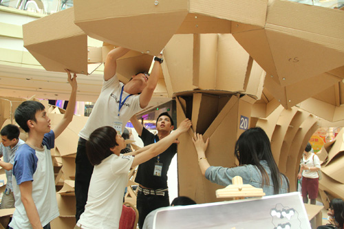 2014年4月19 – 20日,一个个创意的纸板建筑在湖里区万达广场拔地而起,令人眼前一亮。由市科协和市土木建筑学会主办,厦门大学建筑与土木工程学院承办的厦门市第四届大学生实体建构竞赛的决赛正在火热进行。