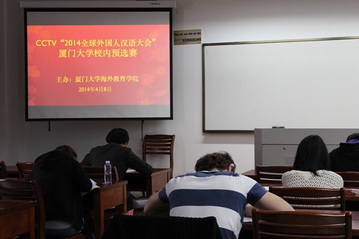 4月8日晚,由厦门大学海外教育学院主办的2014全球外国人汉语大会厦门大学校内预选赛在二号楼B401顺利举行。海外教育学院党委副书记伍伟平、方环海教授、刘强老师、肖宁遥老师、洪镔老师出席比赛并担任评委。