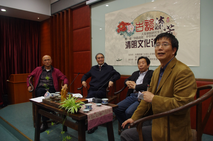 论坛以“慎终追远月,风起话清明”为主题,厦门大学首届十位名师之一、厦大人文学院中文系教授、原副院长朱水涌,厦大人文学院哲学系、宗教学研究所教授、曾在央视10套节目《百家讲坛》栏目主讲《崇祯那些年》的傅小凡,厦门知名民俗专家、原文化局副局长彭一万,厦门大学历史系副教授李智君以演说、自由讨论的形式,为厦大学子解读清明文化。四位嘉宾结合自己的亲身经历,在感性认知的基础上,从文学、民俗学、历史学、人类学等学科角度,解读清明文化,对扫墓祭祖、踏青插柳等社会、历史相关问题进行研讨,阐释厦大清明建校史,增强论坛话题的交互性和时代性,展现人文科学现世关怀,纪念厦大93周年校庆。