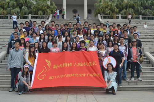 “几树半天红似染,居人云是木棉花。”三月末的厦门,又到了木棉花开的季节。在这个阳光明媚,繁花似锦的季节里,为了丰富同学们的课余生活、增进不同院系同学间的沟通与了解﹑培养同学们的团结协作精神,由厦门大学建筑与土木工程学院研究生会、人文学院研究生会、外文学院研究生会、法学院研究生会、物理与机电工程学院研究生会以及国际关系学院/南洋研究院研究生会共同筹办的“薪火相传”六院研究生骨干培训班系列活动——厦门大学“六院”趣味运动会于2014年3月30日上午8::30在厦门大学本部上弦场顺利举行。