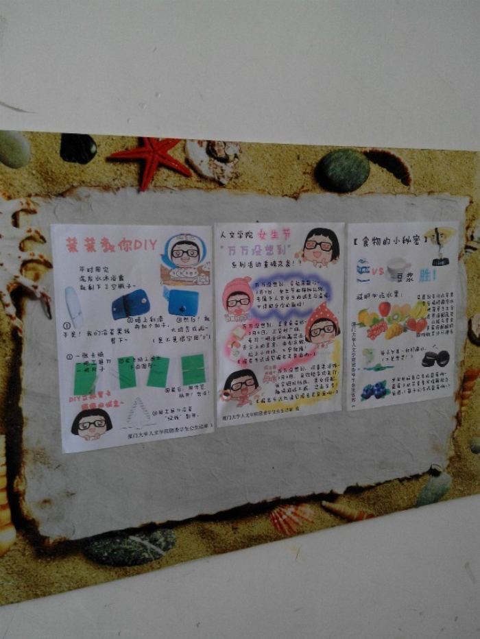 住在石井宿舍园区和海韵宿舍园区的人文学院13、12级女生,在3月7日的早晨一推开门就见到了门口栏杆处绑扎的粉紫相间的定制气球,纷纷大呼惊喜,那是人文学院生活部的成员提前一晚辛苦布置的成果。11级、10级的女生宿舍同样也经过精心的布置。除了气球装饰,石井二、海韵九以及人文学院13级男生所在的芙蓉四宿舍楼都挂上了条幅,“春风欲止因羡蕙质兰心,杨柳婀娜不胜人文芳华”文采飞扬的字句映衬出对人文女生深情款款的祝福,路过芙蓉四的游人都纷纷驻足拍照。