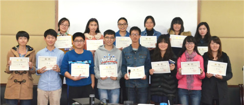 12月26日下午,法语系在囊萤楼赵子逊学术与文化活动室举行了“C’est le français !——法语专业2013级朗读比赛”。之前,全体13级同学通过提交朗读指定对话和短文的录音方式参与了初赛,有20名同学入围决赛。决赛要求在没有时间准备的前提下,每人即兴朗读现场随机抽取的对话和短文各一篇,由大一任课的四位专业老师作为评委,根据同学们朗读的语音语调的正确率、节奏连贯及流畅度等口语综合表述能力打分。经过紧张有序却不失欢快的比赛,最终14名同学分享了一、二、三等奖,分别获得各自名次的奖状和《汉法分类词汇手册》、《法语实用文体与练习》(外研社赠品)及精美法语原版小说的奖品,而全体同学也都得到法文原版的诺曼底旅游宣传册作为纪念。