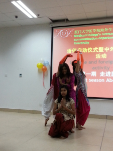 22日当晚,中外小伙伴们相约来到爱礼楼参加“语伴活动启动仪式暨首期中外文化沙龙”,四位来自印度的女学生以极具印度风情的曼妙舞姿为活动开场。本次中外文化沙龙以“走进厦门”为主题,来自医学院学生会海外生联络部的两名同学如同导游一般,用热情生动的语言,通过展示丰富精彩的PPT、图片和视频,带领现场近200名中外学子一起欣赏鼓浪屿的美景,学习郑成功的英雄事迹,领略南普陀的佛教文化,了解厦门的闽南特色美食。现场听众听得津津有味,纷纷表示希望有机会可以亲自到厦门各个美丽的景点游览,感受厦门特有的风土人情,并深入了解中国的文化底蕴。
