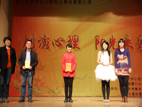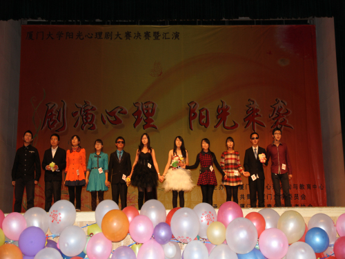 2013年11月30日晚,厦门大学第六届“剧演心理,阳光来袭”心理剧大赛暨汇演在厦门大学建南大礼堂成功举办。本次大赛由厦门大学心理咨询与教育中心和共青团厦门大学委员会主办。参与本次评选的校外专业心理咨询机构的专家、多名国家二级心理咨询师,以及来自各个院系的48位学生评委。大赛旨在通过话剧的方式表现当今学生于生活学习上遇到的心理困惑,有助于大学生树立正确的人生观,丰富课余生活的同时关注心理健康问题。
