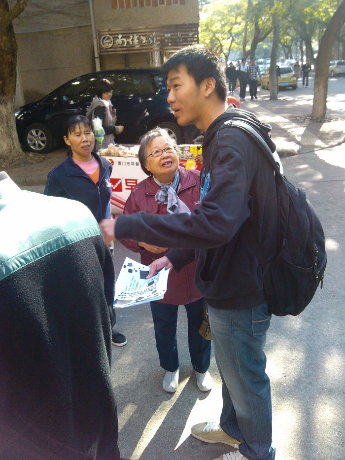 为了让更多的老师和同学能了解此次活动,活动前期志愿者们在园区附近张贴了维护活动的海报。活动当天,十名志愿者到园区各个地方分发传单,让尽可能多的人从活动中受益。