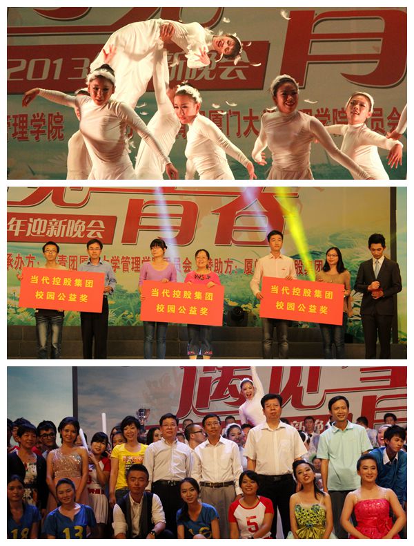 “很感动有机会回到校园,再一次遇见青春;很荣幸能够助力此次晚会,为同学们搭建舞台、提供校园成长公益奖。” 当代控股集团总裁、管理学院EMBA王东红校友在11月10日举行的当代之夜“遇见·青春”管理学院2013年迎新晚会的颁奖环节中是这样表达他的感受的。校党委副书记、副校长李建发,管理学院党政班子全体成员,各系、所、中心主任,校友代表,学院师生参加了本次晚会。