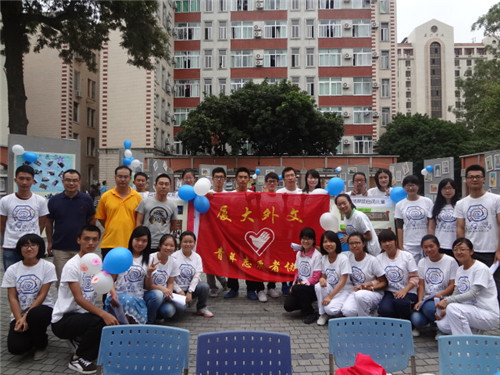 2013年11月1日,外文学院青协在三家村广场举办了星星村自闭症儿童画展。早晨8点半,外院青协部员们已经在三家村广场集合完毕,开了紧张的布展工作。经过大家的努力,不一会儿,十余块展板上已经挂满了孩子们创作的50余幅作品。