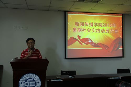 为了介绍和宣传暑期社会实践的意义和成果,动员和组织更多同学投身到暑期社会实践中来,结合往年的优秀经验与做法,给同学们提供参考和借鉴,做好本年度的暑期社会实践工作,5月29日中午,新闻传播学院团委在新闻楼报告厅举行2013年度暑期社会实践动员大会。学院团委书记戴蓥,团委副书记胡泽红,辅导员黄文、钟书库等与各年级学生代表一同出席。