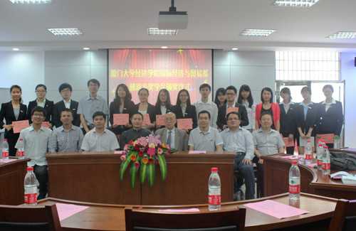 5月10日上午,2013年度厦门大学经济学院国际经济与贸易系“魏嵩寿奖学金”颁奖典礼在经济学院A501隆重举行。出席颁奖典礼的嘉宾有:魏嵩寿奖学金基金会理事会理事长、国际经贸系原系主任、资深教授魏嵩寿;魏嵩寿奖学金基金会理事会理事、国际经贸系88级系友叶在富;经济学院党委副书记孙梓光;魏嵩寿奖学金基金会理事会秘书长、国际经贸系主持工作副主任彭水军;魏嵩寿奖学金基金会理事会理事、国际经贸系副主任林季红;魏嵩寿奖学金基金会理事会理事、国际经贸系主任助理张少军;国际经贸系研究生教秘巫启明。