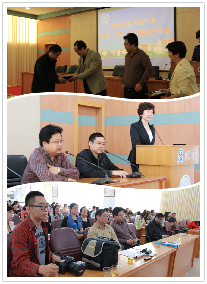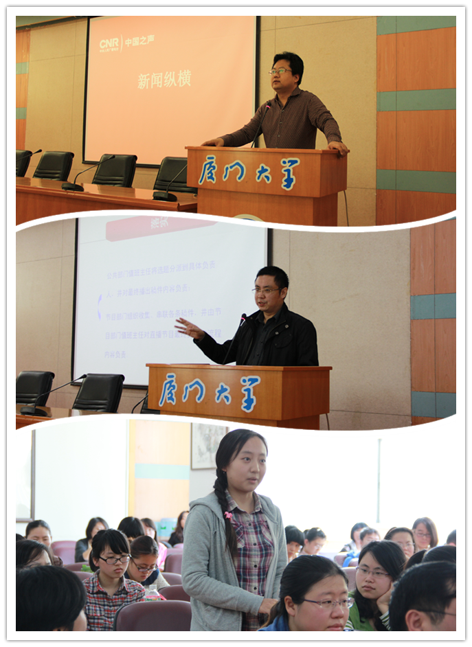 为全面展现新闻传播学院学科建设成果,加强学术交流,拓展学生的学术视野,增进学生对新闻事业的了解,4月16日上午,新闻传播学院在颂恩楼220报告厅举办院庆暨学科建设三十周年系列讲座,邀请中央人民广播电台节目新闻节目中心策划部主任罗厚和早间节目主任樊永信担任主讲。厦门市委宣传部副部长封斌林、厦门大学新闻传播学院副院长赵振祥等与校党委宣传部、校团委、新闻传播学院、党委宣传部学生记者站、《厦大青年》、《凌云报》的师生们一同出席了该次活动。讲座由厦门大学党委宣传部副部长楼红英主持。