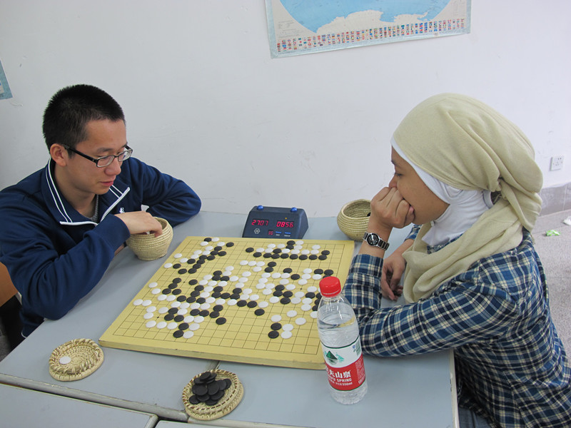 代表海外教育学院参赛的留学生们无疑是赛场上的另一亮点。他们分别来自美国、法国、德国、瑞典、日本、印尼等国家,抱着学习和拼搏的态度,沉着应战,认真地对待每一局棋。第三轮日本的女棋手日高礼香对阵另一个女棋手谢欣欣,她审时度势,一丝不苟地下着每一步棋直到终局,最终赢得了胜利;法国的包贵勇在比赛棋局结束后,用苹果手机把棋局拍下来,认真地反复研究着。厦大围棋协会会长朱建共老师见状表示十分欣慰——一个外国人对中国的国粹围棋的热爱竟至于此!还有马迪、易光珠、洪礼玮、魏桐文等同学,他们在场上的表现亦可圈可点。