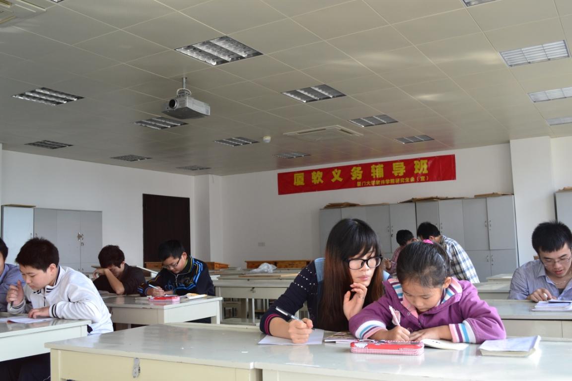 软件学院“厦软义务助学辅导班”已于2012年12月8日正式启动。该志愿活动由厦门大学软件学院研究生会青协和研究生党支部共同举办,主要针对我校学生公寓的后勤、物业职工的在学子女开展每周一次的一对一义务学业辅导,以期提高学生的学业水平,帮助家长缓解压力,为和谐校园的创建贡献绵薄之力。