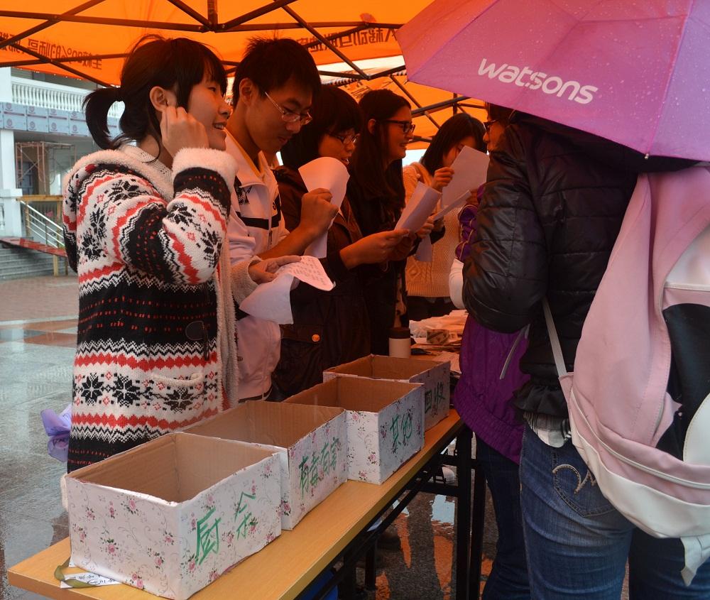 活动的宣传内容涉及到垃圾分类的多个方面,以有奖知识问答、模拟垃圾分类等活泼的方式展开。活动开始,虽然天空一直下着小雨,但同学们参与活动的热情很高。同学们运用日常生活中垃圾分类的小常识,参与到答题宣传环节中,很多同学答题成功后还获得了主办者精心准备的环保袋和有关垃圾分类的精美书签;而在另一模拟垃圾分类环节中,通过思考具体垃圾的所属种类,大家则更加真实地了解了正确的分类方式。