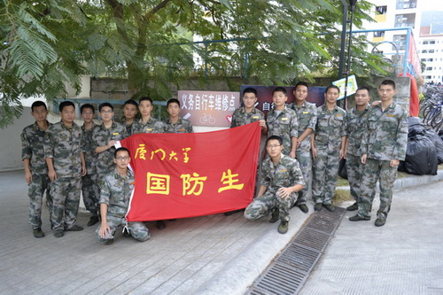 在党的十八大隆重召开之际,物理与机电工程学院自行车维修队结合我校刚从漳州校区搬迁大量旧自行车、修理任务繁重的实际情况,发挥专业优势,在校内开展校园自行车维修志愿活动,本次“校园自行车维修队”由机电系二十余名国防生党员组成。