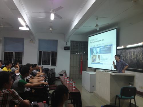经验丰富的学长学姐依次上台与大家交流。几位同学的演讲各有侧重,来自09级物理系的毛水洋介绍了团队选择的要点。09级航空系的杨祺则全面介绍了比赛的流程和注意事项,尤其点出了人际关系在比赛中的重要性。就读于经济学院国贸系研一的李欣就创业计划书作了详细的解读,而09级物理系的张力文也以自己的经历做了补充发言。学长学姐们的演讲全面细致地解答了“挑战杯”的诸多问题,帮助有兴趣的同学迈出了科技实践创新的第一步,同时也激发出同学进行科技创新的热情,积极参与到这项比赛中去。