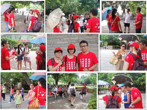 在首日6月30日的活动中,导游队的志愿者们身着特制的印有logo和标语的红色T恤,头戴小红帽,在校园内巡回流动服务。这些文明小使者们不顾酷暑,耐心细致地为游客服务,对不文明行为进行了适当的劝导,300份倡议书发放一空。他们对校园内交通、地理、餐饮和其他服务设施的分布都很熟悉,对维护校园文明整洁有深刻认识和自觉性,谈吐得体,得到帮助的游客们不断表示感谢最后满意的离开。他们为维护校园和谐美丽贡献了青年学子的一份力量,展现了厦大学子的青春风采,形成了校园里一道美丽的风景线。