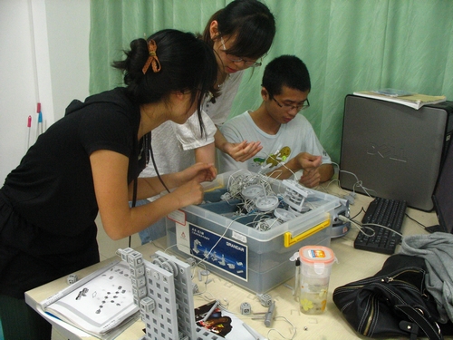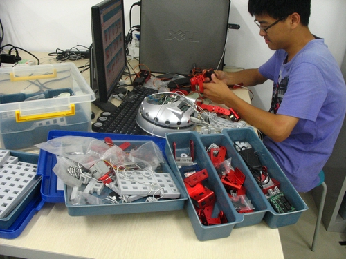 厦门大学机器人拼接大赛本着学科交叉的原则,坚持面向全校工科、理科、文科等所有专业开放,迄今已成功举办两届,吸引了来自于全校各专业数百名同学的热情参与。本次大赛为了有效提高本科生的创新实践能力及保证更多同学参与,学院与训练中心对实践教学的现有模式进行了深入思考,做出了如下探索:一方面,最大限度开放现有实验室,充分调动同学们的科研创新热情。为吸纳更多同学参与到活动中,2011年,在教务处与现代教育中心的支持下,机电工程训练中心开设校选课程《机器人技术及实践》,该课程综合了传统教学与竞赛活动的特色,理论教学与实践并重。另一方面,训练中心从活动中遴选出优秀苗子参与专业要求高、影响力大的国家级、省级比赛。在该培养模式下,在2011年央视全国大学生机器人大赛中,我校参赛队荣膺双项奖,成绩名列前茅。