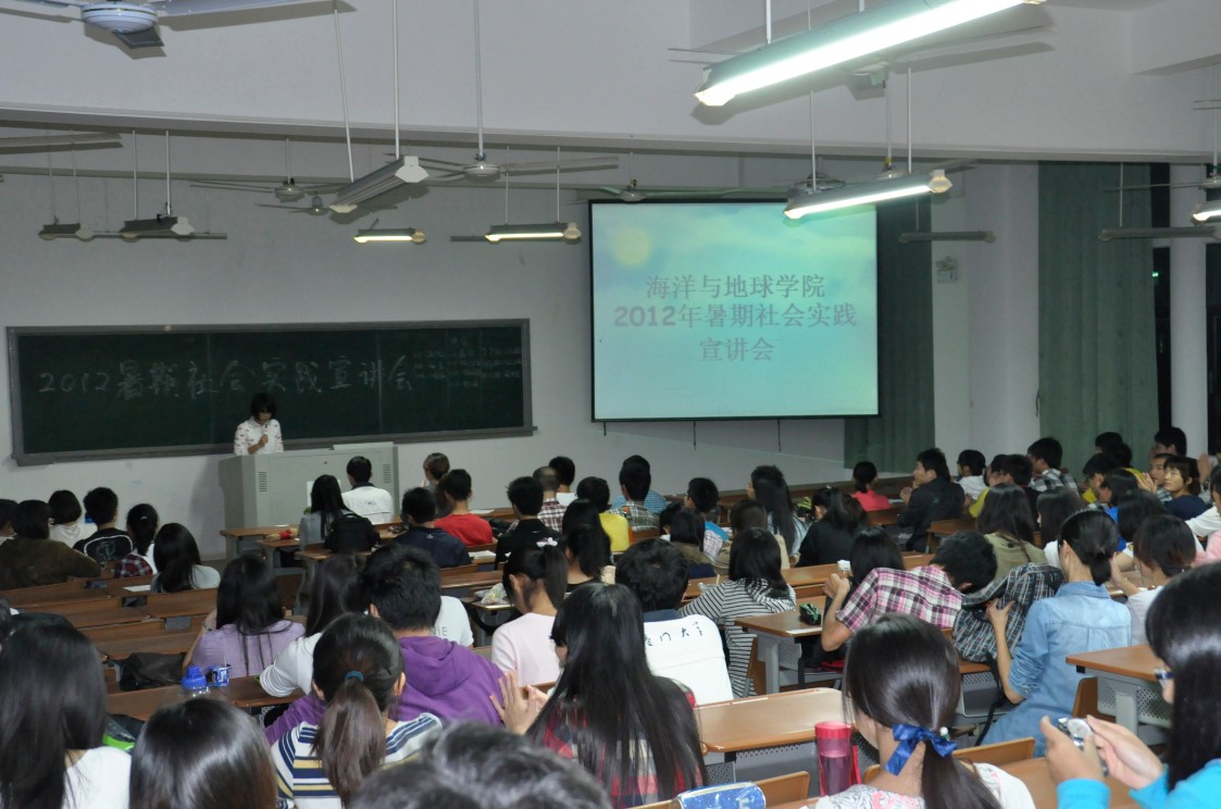 2012年5月5日晚,海洋与地球学院2012年暑期社会实践宣讲会暨暑期社会实践动员大会在漳州校区四号楼312顺利召开。海洋与地球学院团委书记吴珊珊、辅导员黄德强出席了本次会议。