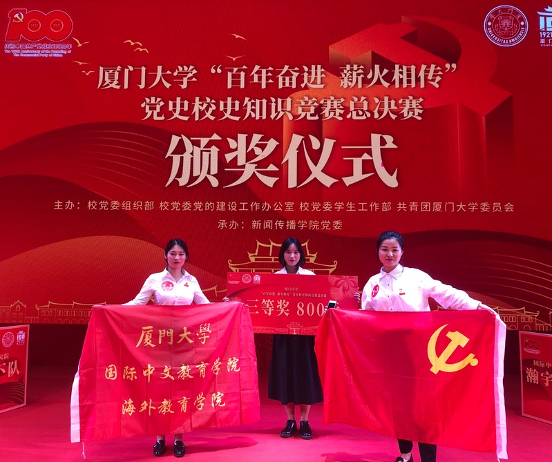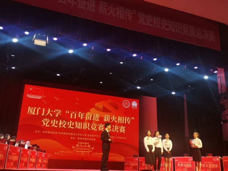 为学习贯彻习近平总书记在党史学习教育动员大会上的重要讲话精神,弘扬嘉庚精神、奋进百年征程,持续深化爱党、爱校教育,不断增强全校青年学子自信心和自豪感,厦门大学“百年奋进 薪火相传”党史校史知识竞赛总决赛于5月21日晚在思明校区建南大会堂举行。经过院级初选、校级笔试选拔,我院“瀚宇之花炫彩队”进入总决赛,最终以第四名的好成绩荣获三等奖。