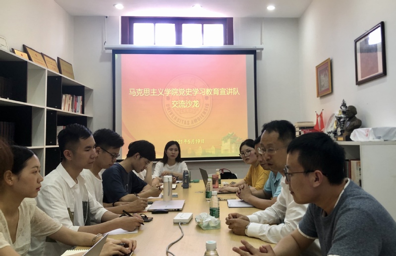 为深入学习贯彻习近平总书记在党史学习教育动员大会上的重要讲话精神,激发青年学子“知史爱党,知史爱国”的共识与行动,马院组建成立党史学习教育宣讲队。5月19日下午,宣讲队在囊萤楼225会议室举行交流沙龙,张艳涛教授、贾凯副教授作为指导老师出席了活动,蔡虎堂老师及我院党史学习教育宣讲队成员一起参加了本次活动。