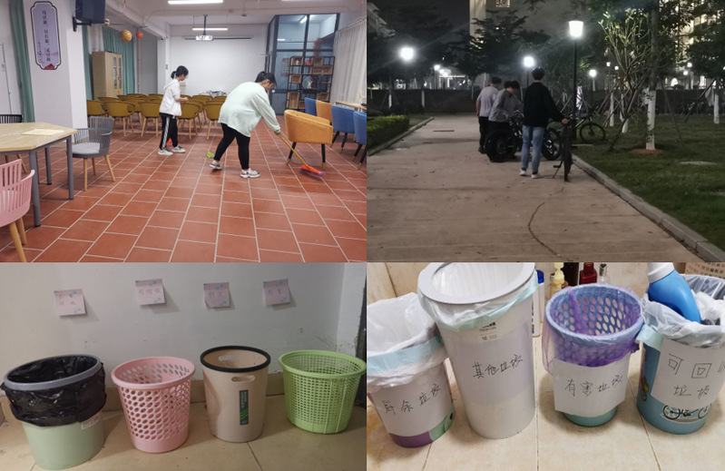 劳动最光荣,在宿舍文化节中,最重要的体现方式就是劳动,收拾宿舍并装饰宿舍,文化成果也是劳动成果。同学们将宿舍内打扫得一尘不染、焕然一新,将书桌收拾得整整齐齐、各具特色,将垃圾按类投放、环保卫生。在“一站式”共享空间,同学们将地面清扫干净、桌面书籍整理有序、展柜摆件整齐、桌椅归位,并提醒同学们学习后清理桌面、带走垃圾、摆好桌椅。整理社区内的占道自行车,以防止违规占道的单车造成消防隐患,为同学们的出行带来便利,用实际行动践行青年担当。