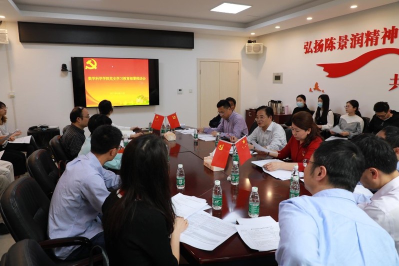 3月31日,在全校上下喜迎建校百年华诞之际,学院党委即在海韵园行政楼B313会议室召开党史学习教育部署推进会。全体参会人员集体观看视频《中国共产党百年述职报告》,深切感受用鲜血、汗水、泪水、勇气、智慧、力量写就的百年党史,从中汲取奋进力量。会上对学校党史学习教育实施方案作了说明,公布了学院党史学习教育领导小组及办公室机构组成名单和工作职责,学院主页“党史学习教育专栏”(设置学习教育动态、重要论述精神、党史理论纵横三个栏目)也随之启动。