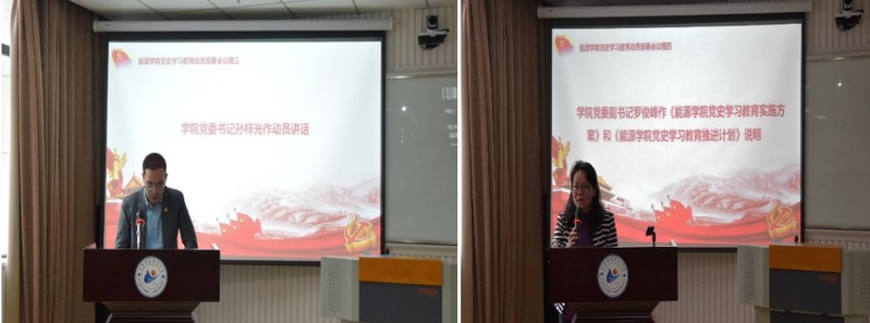学院党委副书记罗俊峰对《能源学院党史学习教育实施方案》和《能源学院党史学习教育推进计划》作了说明。她详细介绍了学院开展党史学习教育工作的时间进度安排和推进任务清单,从“压紧压实责任”“把握正确方向”“坚持务实作风”“做好宣传引导”四个方面,要求全院各支部根据学校和学院党委统一部署要求,结合工作实际,主动谋划推进党史学习教育各项工作安排。