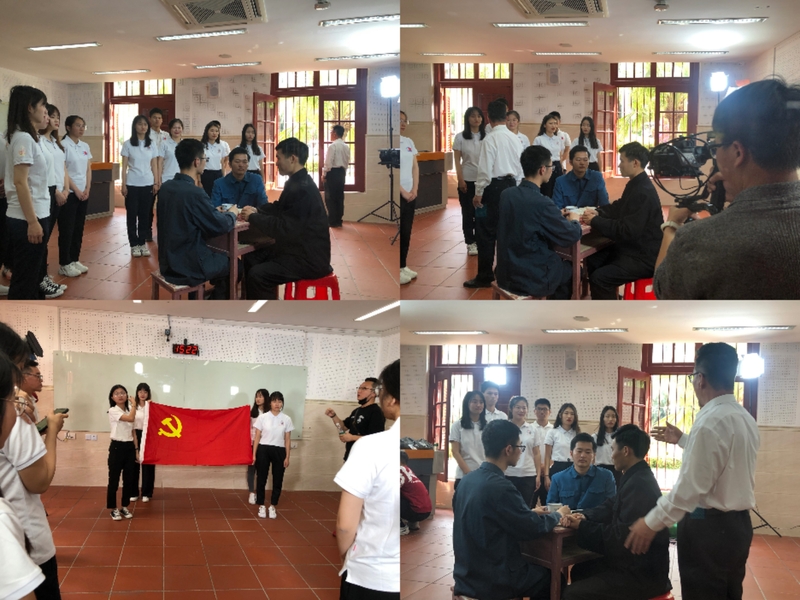 当日下午1点,参演学生早早地来到拍摄地点囊萤楼——这里是厦门大学第一个党支部遗址旧址。演员们按照节目组要求,换服上妆,练习走位和熟悉台词,每一幕场景、每一个动作、每一个眼神都无比认真和严谨。此次拍摄场景真实还原了当年罗扬才同志在厦门大学建立党支部的画面,同时融入现代元素,加入了入党宣誓仪式,充分彰显了新时代青年坚定理想信念,一心向党的精神。在大家的积极配合下,节目组完满完成拍摄任务。