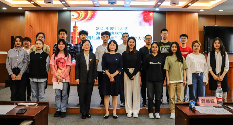在聆听各团支部书记的展示后,唐腾凤老师进行总结点评。她认为各位团支书的精彩展示彰显了团支部的活力魅力,更凝结着各团支部一年来的辛勤工作,体现了学院团委扎实的工作和丰硕的成果。她强调各团支部要从提升团的组织力、引领力、服务力和贡献度出发,结合学科优势,切实加强团支部建设,丰富团支部活动,在未来取得更大的成绩。同时,她号召学院全体团员青年深入学习宣传贯彻习近平总书记致厦门大学建校100周年贺信精神,以建校100周年为新起点,传承伟大五四运动精神,接力爱党爱国的火炬,为建设社会主义现代化国家,建设海洋强国做好准备!