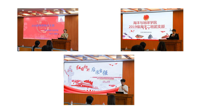 为加强团组织建设,提高团支部的凝聚力,调动团员青年的积极性,2021年4月13日,海洋与地球学院2020年度“五四红旗团支部”评选答辩会在希平楼顺利进行。学院党委委员、副书记唐腾凤、团委副书记侯佳君、蔡笑霜、本研团总支书记、学生会执行主席、本科生团总支副书记、团总支各部门代表、各团支部书记担任评委。会议由2020级本科生宋梓鑫主持。