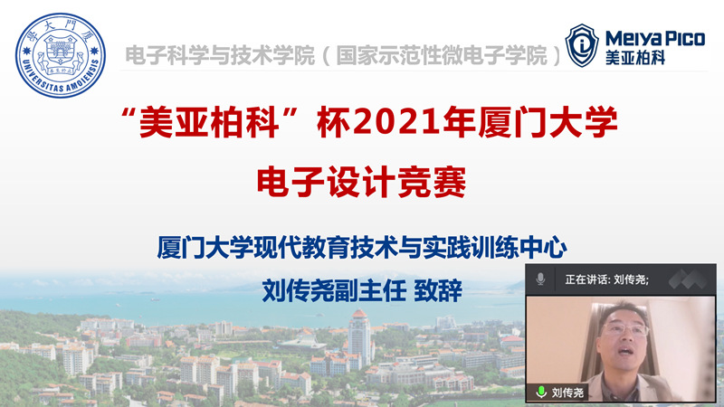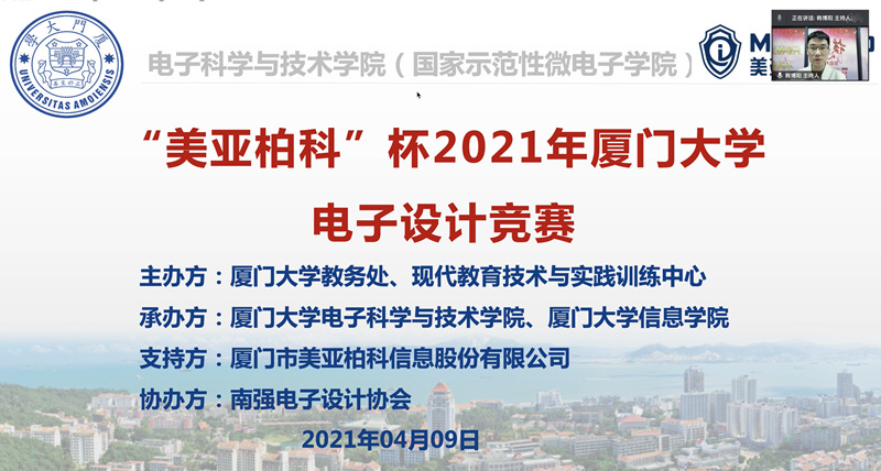 4月9日晚,“美亚柏科”杯2021年厦门大学电子设计竞赛启动仪式通过线上方式举行。本次大赛共有来自电子科学与技术学院、信息学院、航空航天学院、生命科学学院等多个学院70余支队伍,318人参加。