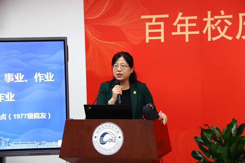 朱德贞对钟兴国的观点表示了赞同,并再次强调了“先完成,再完美”对于初入职场的年轻人的重要性。她对此补充道,外文毕业生应多方面发展,建立广博的知识基础,同时,也应摆脱不必要的压力,追求内在的幸福感,逐渐建立对自己的信任,在学习的过程中慢慢成长。朱德贞在分享中从练就过硬本领和修养身性两个角度出发,进一步讲解了外文人该如何做好人生这篇大“作业”。
