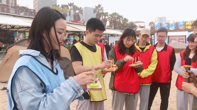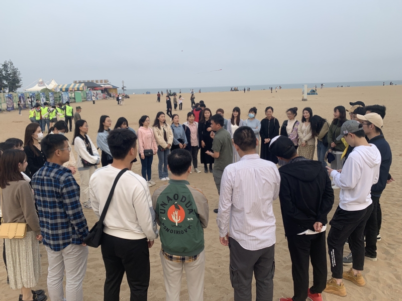 春光和煦、蝶飞燕舞。三月的厦门春意正浓,风景如画。下午4时许,大家组队前往团建地点——厦门观音山沙滩。到达目的地后,大家进行了短暂的休憩和热身,在教练充满激情的指导下,队员先进行了“猪宝宝送信”的破冰游戏,该游戏充分考验反应能力和队员之间的默契,落单的成员需要接受惩罚。接着,队员们按照顺序依次报数,“1,2,3 ,1,2,3......”,按照报数结果分出3个队伍,正式开启了游戏模式。在“雷区取水”游戏中,3组队友互相帮助,紧密配合,形成一种默契,在规定时间内依次取得矿泉水,用时最短的队伍获胜。这个项目既要勇敢地突破自己,也要对团队充分信任。在工作中也是这样,只有团结协作、勇担重任才能高效完成一件事。团建期间,还进行了其他的互动游戏。