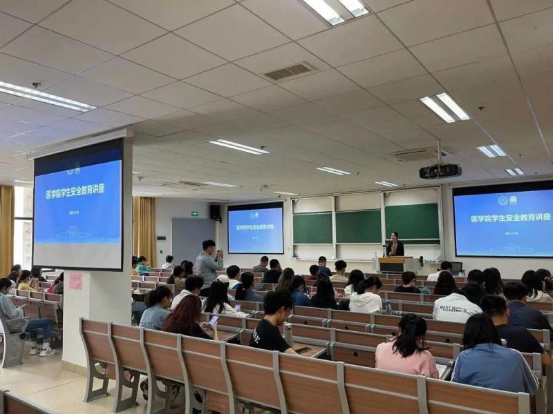 为进一步加强学生安全教育,构建平安校园,医学院于3月19日中午在爱礼楼104举行医学院学生安全教育讲座。本次讲座邀请到了翔安校区保卫办叶晓东及方幸福两位老师主讲。医学院党委副书记王坤钟、团委副书记谢婷玉、辅导员许温洁出席讲座,校区本研各班班长、安全委员、生活/权益委员参加了讲座。