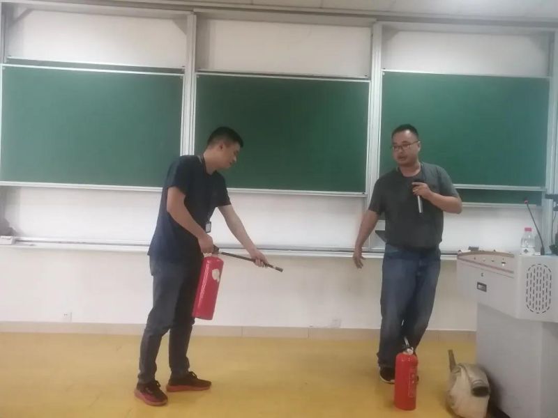 紧接着,叶老师与方老师为在场人员普及并演示了灭火器常规类型的适用范围及规范操作。