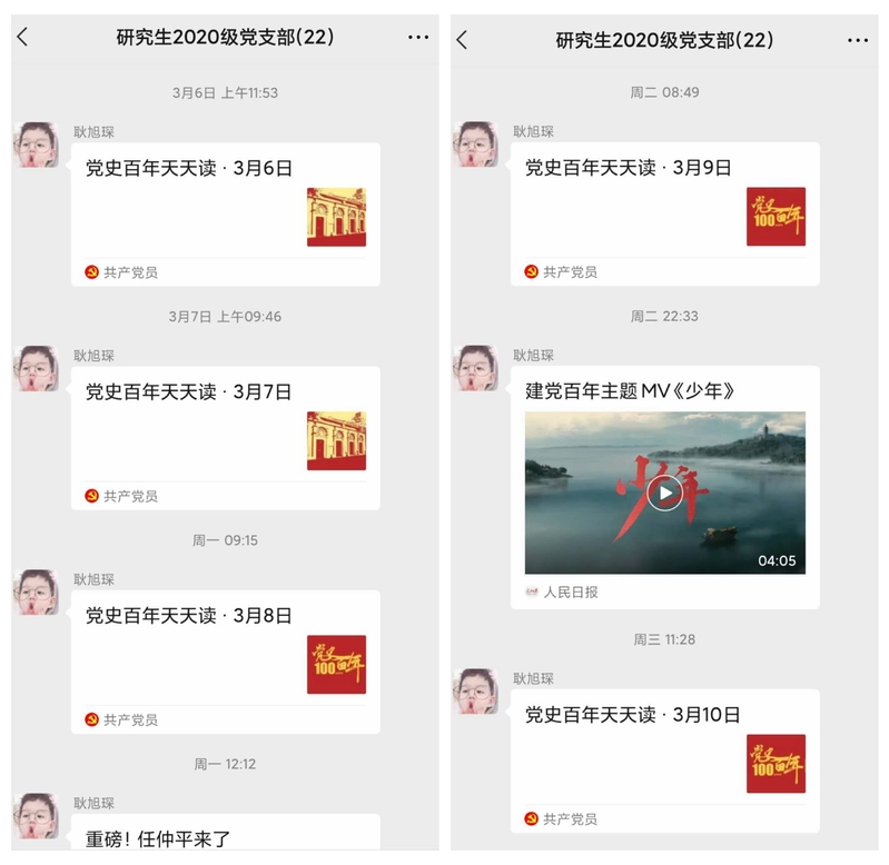 为深入学习贯彻习近平总书记在党史学习教育动员大会上的重要讲话精神,国际中文教育学院/海外教育学院研究生2020级党支部开展了党史学习教育之“党史百年天天读”活动。