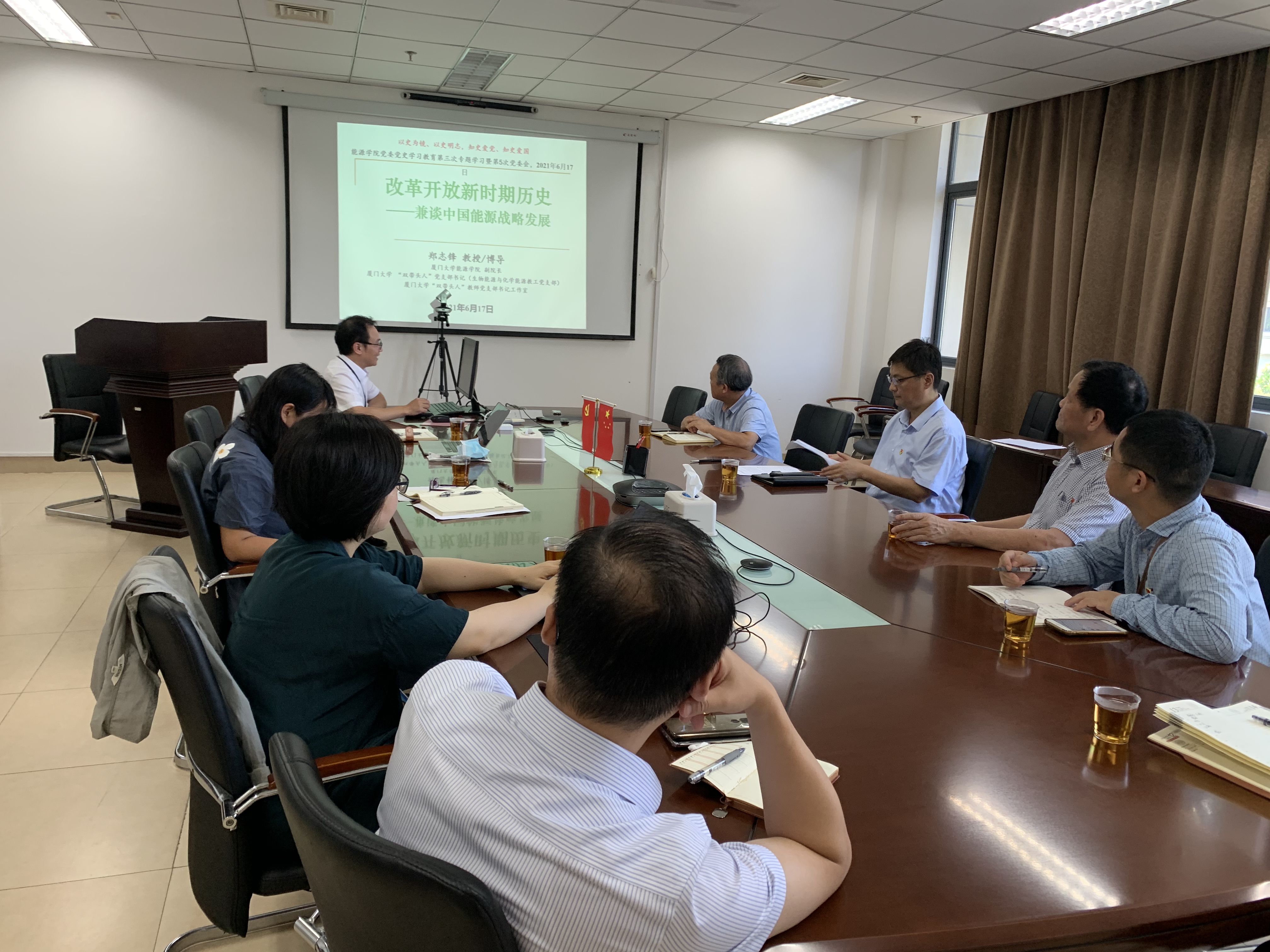 主持工作副院长林鹿谈到,深入学习改革开放新时期的历史,能加深对党的建设规律的认识和把握,党史学习教育正当其时。能源作为国计民生的重要领域,新一轮能源革命蓬勃兴起,清洁低碳安全高效的能源体系逐步形成。学院应积极适应国内国际形势的新发展新要求,秉承“发展能源技术 共同改变世界”的宗旨,更好服务经济社会发展,更好服务美丽中国、健康中国建设。