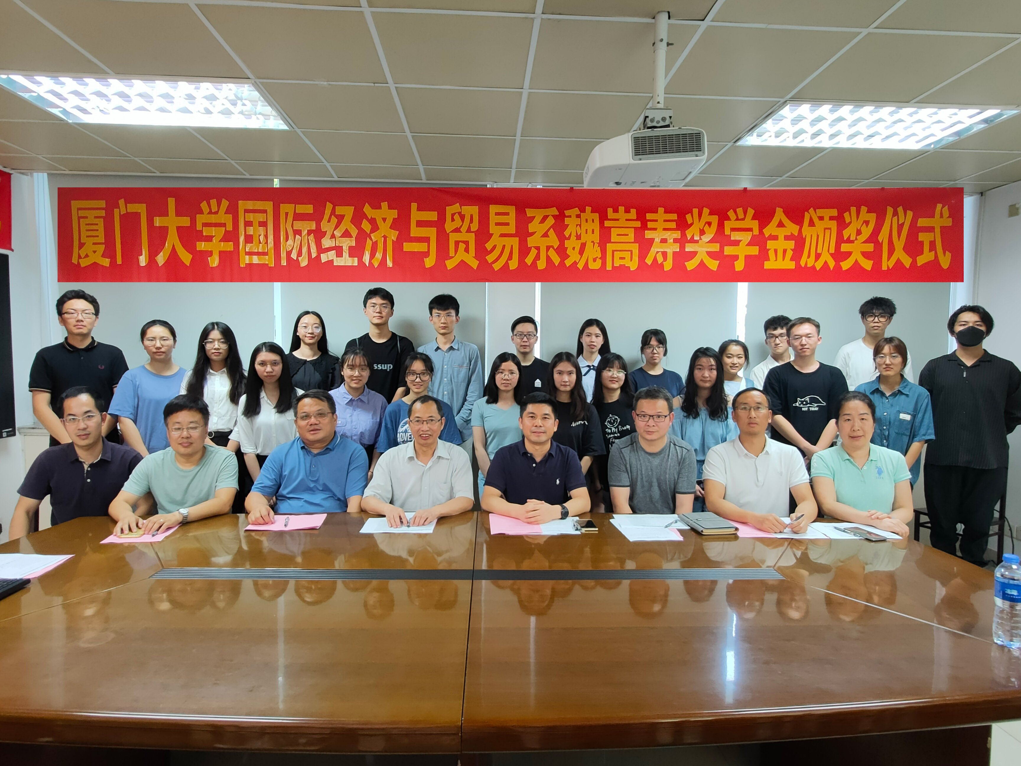 6月17日下午,经济学院国际经济与贸易系第十四届“魏嵩寿奖学金”颁奖仪式在经济学院A318隆重举行。经济学院党委书记黄鸿德,国际经贸系主任彭水军,国际经贸系副主任林季红,国际经贸系杨权等老师以及获奖学生代表出席了本次颁奖仪式。