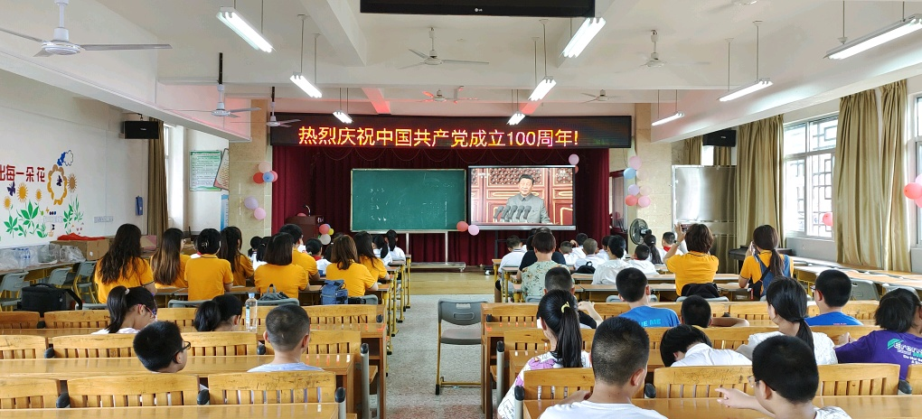 2021年7月1日,在中国共产党成立100周年之际,正在素有“红色小上海”称誉的红色故地——长汀支教的教育研究院“榕树厦”实践队全体队员与登俊小学的小学生们一起庆贺党的百年华诞,他们共同观看“庆祝中国共产党成立一百周年大会”直播,见证党的百年奋进和沧桑巨变。