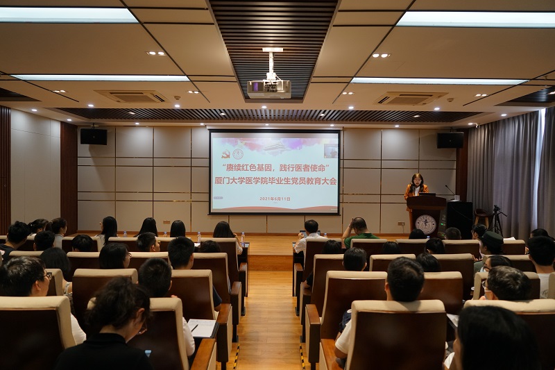 6月11日上午,以“赓续红色基因,践行医者使命”为主题的厦门大学医学院毕业生党员教育大会在厦门大学医学院成义楼102报告厅召开。医学院党委书记张建安、党委副书记何丽苹、毕业班辅导员、组织员、党务秘书和医学院在厦门的全体毕业生党员参加了大会,同时开放线上直播供在漳州、福州附属医院实习的毕业生党员收看。大会由毕业生党员陈琪主持。