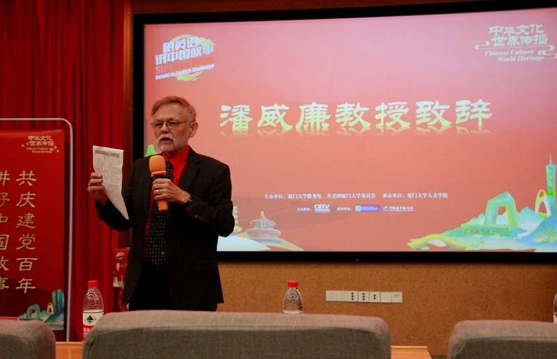 精彩的展示之后,潘威廉教授对本次大赛进行了总结点评。潘威廉教授结合实际着重强调了讲中国故事的重要意义。他说,讲故事是交流的最好方式,通过讲故事,西方人才能了解中国的历史,才能解决中国了解世界、而世界却不了解中国的局面。在讲故事的过程中,耐心、精彩的内容和好的肢体语言是使故事能够吸引人的重要因素。在评委点评环节中,刘文忠教授对来自不同学院的各位选手致以欢迎和感谢,并表达了希望各位选手能经由此次比赛收获经验、取得更优异成绩的祝愿。沈安妮教授表示,学生需要用个性化、充满趣味的方式讲述中国故事,就如何更好地讲中国故事提供了指导意见。
